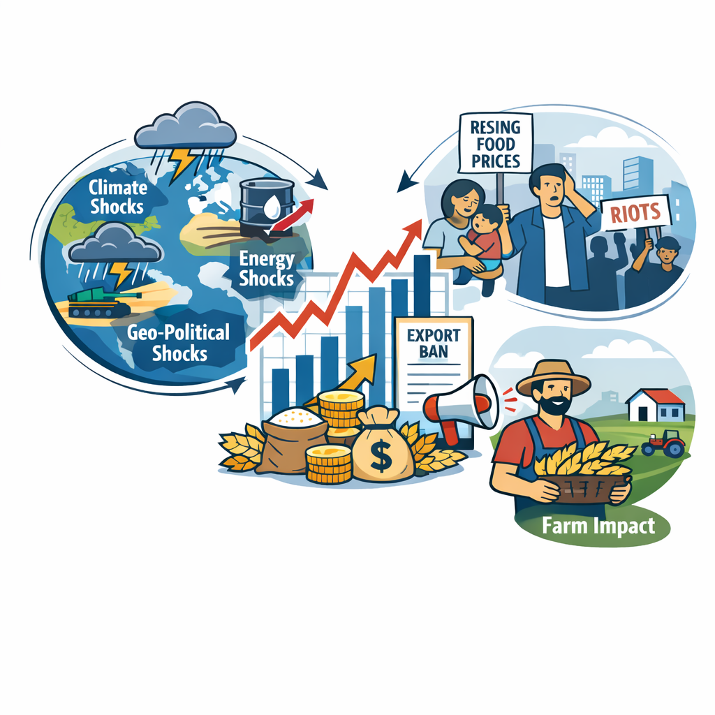 class: center, middle, inverse, title-slide .title[ # Agricultural Markets ] .subtitle[ ## Lecture 1: Introduction to Agricultural Markets ] .author[ ### David Ubilava ] .date[ ### University of Sydney ] --- # Turbulence in agricultural markets .pull-left[  ] .pull-right[ Agricultural markets are globally integrated. A shock in one place may affect prices in all other places. - When India banned rice exports in the beginning of 2008, we saw the sharp increase in prices of rice, causing the "global rice crisis." - When Russia invaded Ukraine in the beginning of 2022, we saw the sharp increase in prices of wheat and other staples. ] --- # Wheat futures during the war and agreements .pull-left[ - Wheat prices surged at the onset of the war. - War-induced market disruption and the sanctions that followed were both at play. - The agreement on "grain corridor" reverted prices to the pre-war levels. ] .pull-right[  ] --- # Trends in wheat exports .pull-left[ - Russia and Ukraine account for more than a quarter of world wheat exports. - These exports are at par with combined exports from EU and the USA, the two major wheat-exporting regions. ] .pull-right[  ] --- # Trends in wheat production .pull-left[ - Russia's and Ukraine's share in world wheat production is smaller but still substantial. - China and India are notable producers as well as consumers of wheat. ] .pull-right[  ] --- # Cereal price spikes in recent history .pull-left[ - In this century only, the markets have witnessed dramatic increase in prices in 2007-2008, and then in 2010-2011. - Most recently, prices of wheat and maize, have been on the rise since the beginning of the Covid-19 pandemic. ] .pull-right[  ] --- # Russian wheat export bans .right-column[ Focusing on wheat, this is not the first time a large exporting country such as Russia has restricted its exports. - In 2010, in the wake of the drought-induced poor harvest, Russia banned wheat exports for the reminder of the year, and then extended this ban for the first half of 2011. - During the 2007-2008 commodity price boom, Russia imposed an export tax of up to 40%, while in 2015, Russia imposed an export tax of 15% with an additional payment of 7.5 euros per ton. ] --- # Reactive policies amplify shocks .right-column[ The foregoing anecdotal evidence underscores the complexity of factors contributing to short term trends in global commodity markets. Usually multiple factors are at play, which often exacerbate the issue. - The 2010 export ban by Russia was triggered by a climate shock and the related poor harvest of wheat in the country. - The 2022 export ban by India was triggered by a political shock and the related disruptions in the global wheat trade. ] --- # Causes of the market disruption .right-column[ ## Climate shocks Climate shocks and commodity prices are linked through the well established weather - production - prices channel. Two aspects of this relationship are of relevance. First, because cereal grains are grown and harvested annually, the effect of the weather shocks on production also is manifested at annual frequency. However, the expectations about the yields are formed at higher frequency, and updated regularly though various information shocks. ] --- # Causes of the market disruption .right-column[ ## Climate shocks Second, on a global scale, the weather shocks and harvest seasons are not synchronized due to geographical disparities in these shocks as well as seasonal differences between northern and southern hemispheres. Thus, two similar weather shocks in a major crop-producing region can have very different price effects depending on what has happened in other regions (concurrently or in the recent past). ] --- # Causes of the market disruption .right-column[ ## Energy shocks Energy and food markets are linked. Higher energy prices impact agricultural markets through input and transportation costs. - Increase in international freight prices, for example, were a notable factor that led to growing food prices from 2021 onward. ] --- # Causes of the market disruption .right-column[ ## Energy shocks In the past two decades, biofuel production and the associated mandates have become key contributing factors in this relationship. - Increased demand for maize due to U.S. biofuel mandates, was one of the main reasons of the 2007-2008 price spike, for example. ] --- # Causes of the market disruption .right-column[ ## Information shocks Weather or geopolitical events affect prices when information becomes available to the markets. A lack of complete information followed by a sudden update can bring about a price shock. A classic example is the "great grain robbery" of 1972, when the Soviet Union purchased over one billion bushels of wheat from the United States. The U.S. at the time was not aware that the USSR had a crop failure in that year. When this information revealed - world grain prices soared. ] --- # Causes of the market disruption .right-column[ ## Policy shocks Government interventions tend to be featured prominently during food price spikes. Net food-importing countries typically intervene by lowering import tariffs and taxes, while net food-exporting countries often impose export restrictions. Such interventions amplify price spikes. For example, changes in trade restrictions by several major rice producing countries have largely led to the 2008 global rice crisis. ] --- # Causes of the market disruption .right-column[ ## Policy shocks The retaliatory changes in border protection rates manifest into the so-called "trade wars," which can significantly impact global commodity markets and prices. The trade war between the U.S. and China beginning in 2018 led to China levying a 25 percent retaliatory import tariff on U.S. soybean exports. The tariff severely disrupted U.S. soybean exports to China, resulting in a sudden drop in soybean prices in the U.S. and an increase in soybean prices in the rest of the world. ] --- # Causes of the market disr