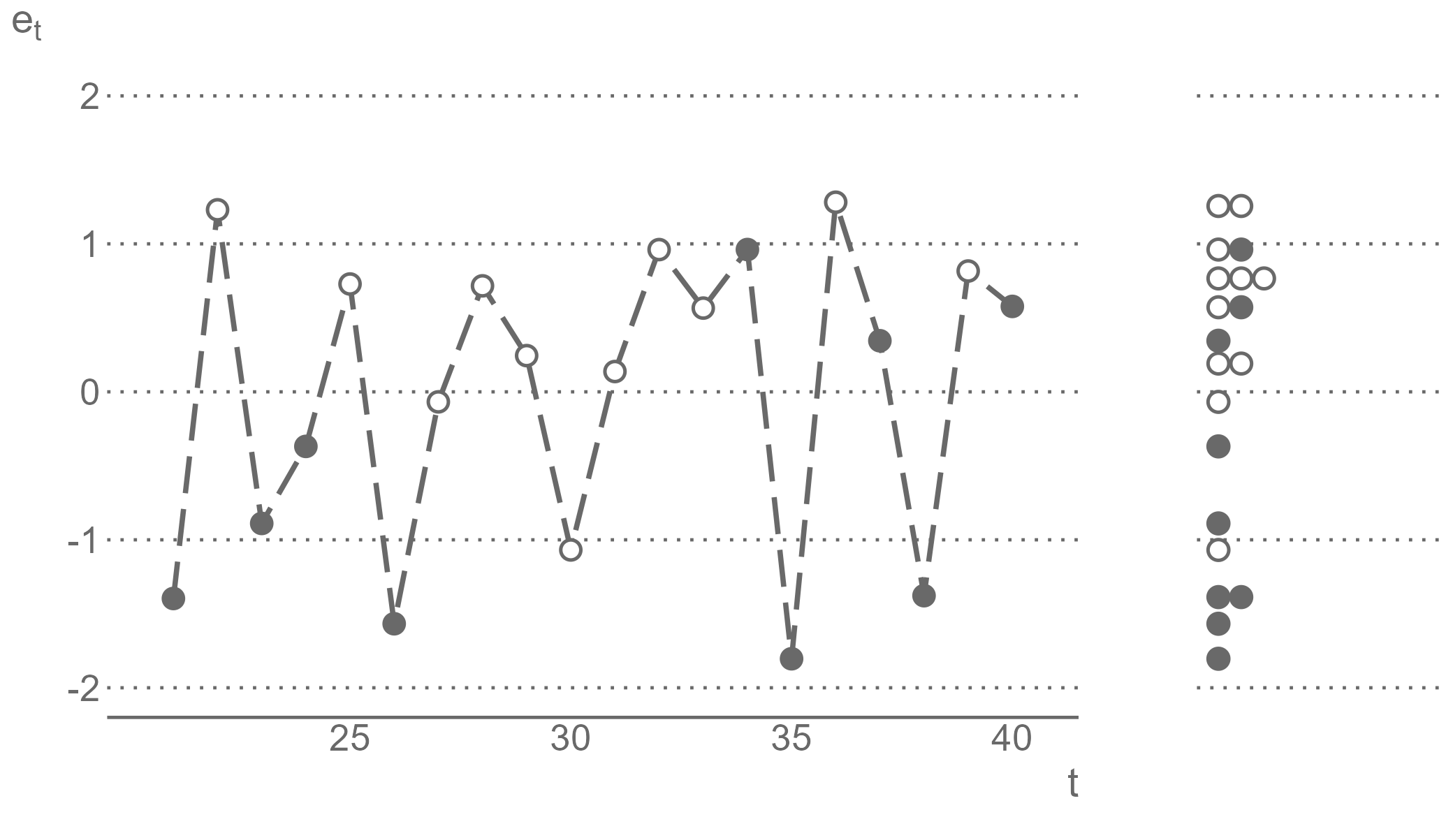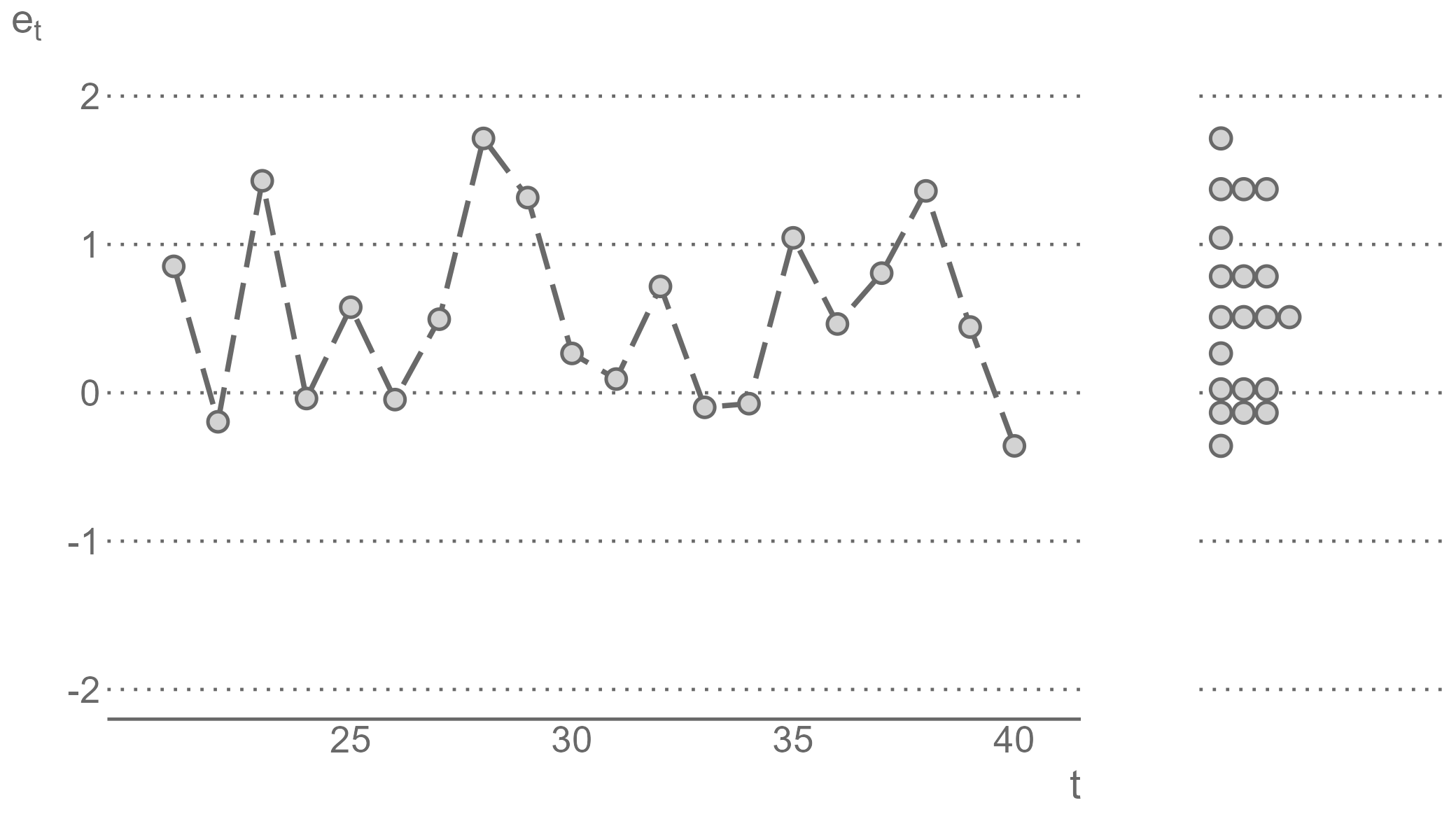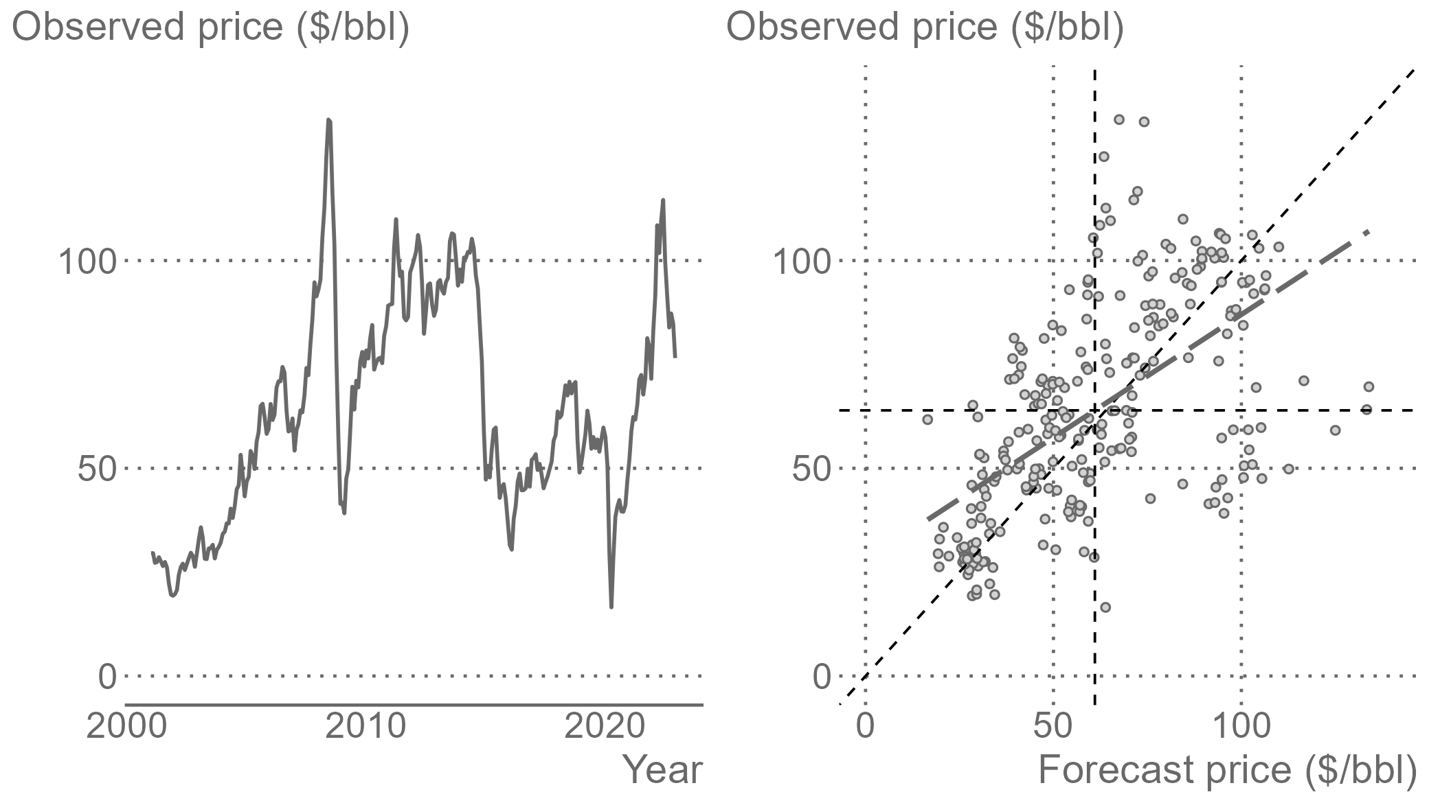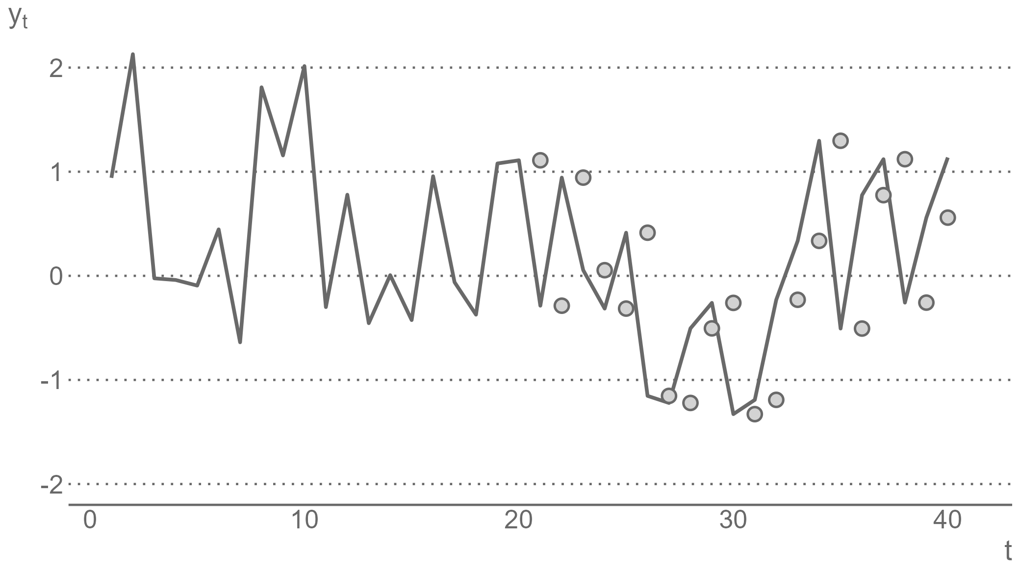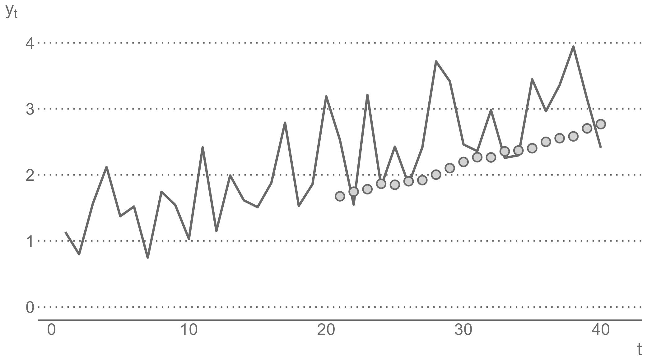 class: center, middle, inverse, title-slide .title[ # Forecasting for Economics and Business ] .subtitle[ ## Lecture 2: Generating and Evaluating Forecasts ] .author[ ### David Ubilava ] .date[ ### University of Sydney ] --- # Pseudo forecasting routine .right-column[ When we make forecasts, we would want to have some idea of how accurate they are. We can get an idea about forecast accuracy by comparing the forecast for some future period, `\(\hat{y}_{t+h|t}\)`, with the actual future realization, `\(y_{t+h}\)`. But to assess forecast accuracy we need the data from the future - a seemingly unfeasible task. So, we can resort to the so-called *pseudo-forecasting* routine. ] --- # In-sample and out-of-sample data segments .right-column[ The pseudo forecasting routine involves splitting the available data into two segments referred to as 'in-sample' and 'out-of-sample' - We use the in-sample segment of a series to decide on the model and estimate its parameters. - We use the out-of-sample segment of a series to compare the forecasts, generated based on the data from the in-sample segment, to the realizations of the variable. ] --- # Genuine pseudo-forecasts .right-column[ Thus, we make the so-called "genuine" forecasts using only the information from the past and present, and we assess the accuracy of these forecasts using the information from the future. Such chronological ordering is usually relevant, because forecasting is often performed in a time series context. In non-dynamic settings, e.g., if we use one subset of data to predict the other subset of data, such chronological ordering may not be needed. ] --- # Recursive and rolling windows .right-column[ As we carry out the pseudo-forecasting routine, we update the information set by including the more recent observations. In so doing, we may choose to keep or discard the more distant observations, which leads to two possible ways of selecting and updating information sets. - The **recursive** windows approach uses a sequence of expanding windows to update model estimates and the information set. - The **rolling** windows approach uses a sequence of windows of the same size to update model estimates and the information set. ] --- # Recursive windows .right-column[ <!-- --> ] --- # Rolling windows .right-column[ <!-- --> ] --- # Recursive vs. rolling windows .right-column[ These two pseudo-forecasting routines are technically very similar. But they can generate considerably differing sets of forecasts. The recursive scheme uses increasingly more data to generate successive forecasts. If the data-generating process does not change over time this may be a preferred scheme as it allows us to estimate the model parameters more precisely. But if the data-generating process changes over time, then the use of all available data may as well harm our forecasts—they will be biased toward the historical past that is no longer relevant. In such instances, the rolling scheme may be a preferred alternative. ] --- # Obtaining forecast errors .right-column[ Suppose we have a time series of a variable `\(y\)` indexed by `\(t\)`, that is, `\(\{y_t\!:\;t=1,2,\ldots,T\}\)`, where `\(T\)` is the length of the time series. To set up a pseudo-forecasting routine, we divide the sample into two parts, the in-sample set containing `\(R\)` observations, such that `\(R < T\)`, and the out-of-sample set with the remaining `\(T-R\)` observations. So, for one-step-ahead forecasts, this would result in a sequence of forecasts: `\(\{\hat{y}_{s+1|s}\!:\; s=R,\ldots,T-1\}\)`. Having observed `\(\{y_{s+1}\!:\; s=R,\ldots,T-1\}\)` we can, then, obtain forecast errors, `\(\hat{e}_{s+1|s} = y_{s+1}-\hat{y}_{s+1|s}\)`, for all `\(s = R,\ldots,T-1\)`. ] --- # Measures of forecast accuracy .right-column[ The most commonly applied accuracy measures are the mean absolute forecast error (MAFE) and the root mean squared forecast error (RMSFE): `$$\begin{aligned} \text{MAFE} = & \frac{1}{T-h-R+1}\sum_{s=R}^{T-h}|\hat{e}_{s+h|s}|\\ \text{RMSFE} = & \sqrt{\frac{1}{T-h-R+1}\sum_{s=R}^{T-h}\hat{e}_{s+h|s}^2} \end{aligned}$$` where `\(h\)` is the forecast horizon. ] --- # Key features of the forecast accuracy measures .right-column[ The MAFE assumes absolute loss; the RMSFE assumes quadratic loss. The lower is the measure of the forecast accuracy, the better is the model or the method used in generating forecasts. Unlike some of the better-known in-sample goodness-of-fit measures (e.g., R-squared), these accuracy measures, on their own, have little meaning. They gain the meaning when we compare two (or more) models or methods of forecasting. ] --- # Measures of forecast adequacy .right-column[ MAFE and RMSFE (or other similar measures) are *relative* measures designed to compare forecasts. These are the mean values (or monotonic transformations thereof) of some loss functions. There also exist *absolute* measures designed to evaluate each forecast individually, i.e., irrespective to any other forecasts. These are measures of forecast *unbiasedness* and *efficiency*, together forming the measure of forecast *adequacy* (or *rationality*). ] --- # Forecast unbiasedness .right-column[ A forecast is unbiased if the forecast error is zero, on average. This condition mimics that of the residuals of a model. But the residuals are, by construction, guaranteed to be mean-zero. This is not the case with forecast errors. We want forecast errors to be mean-zero. Otherwise, we probably have an issue with the model or the method that we chose for generating the forecasts. ] --- # Misspecified model can yield biased forecasts .right-column[ Consider a positively trending time series. And suppose, due to ignorance or incompetence, we did not account for the trend. Instead, we assumed that an appropriate model was the simple mean of the observed series. The forecasts from this model will likely underestimate the realized future values of the time series. That is, the forecasts will be biased. The follow
